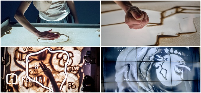 To niezwykłe show, wprowadzające widzów w magiczny świat. Jest to sztuka malowania piaskiem na szkle przy akompaniamencie muzyki. Artyści tworzą niesamowite obrazy, gdzie powstają wręcz żywe animacje, w których może być zawarta historia rozwoju przedsiębiorstwa, jego usług, przedstawione są produkty, logotypy itp.