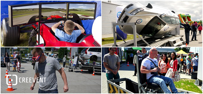 Wśród atrakcji plenerowych pojawią się m.in.: wspólne konstruowanie pojazdów z dostarczonych materiałów, symular Formuły 1 w skali 1:1, symulator dachowania i zderzeń, refleksomierz. Weźmiemy udział w wyścigu mechaników oraz quizie ze znajomości przepisów ruchu drogowego. Ponadto wykonamy slalom w alkogoglach oraz odwiedzimy PIT STOP.